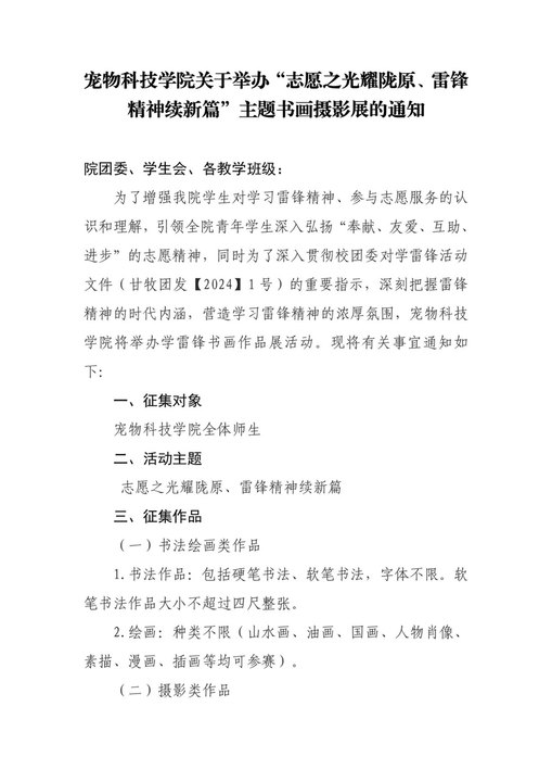 bevictor伟德关于举办“志愿之光耀陇原,雷锋精神续新篇”主题书画摄影展的通知
